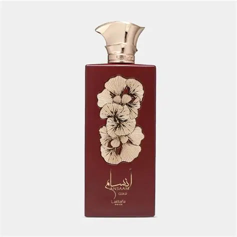 Ansaam Gold by Lattafa Perfumes is a Oriental Floral fragrance for women. This is a new fragrance. Ansaam Gold was launched in 2022. Top notes are Mandarin Orange and Pear; middle notes are Sweet Notes, Jasmine and Rose; base notes are Vanilla, Musk and Raspberry