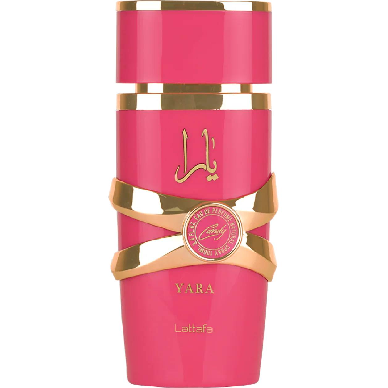 Yara Candy by Lattafa Perfumes is a Floral Fruity Gourmand fragrance for women. This is a new fragrance. Yara Candy was launched in 2024. Top notes are Black Currant and Green Tangerine; middle notes are Strawberry Fizz Candy and Gardenia; base notes are Vanilla, Musk, Amber and Sandalwood.