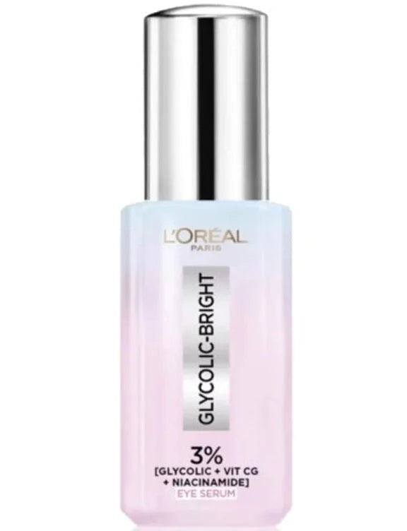 L'Oréal Paris Glycolic Bright Eye Serum is a revolutionary dark circles treatment that helps target prominent concerns like dark circles, hyperpigmentation, and puffiness effortlessly. Formulated with a powerful blend of 3% Glycolic Acid, Vitamin CG, and Niacinamide and developed with a patented Triple Bead Applicator to depuff under-eyes. Wake up with brighter, awakened eyes as if you've enjoyed an extra three hours of sleep with the L'Oréal Paris Glycolic Bright Eye Serum.