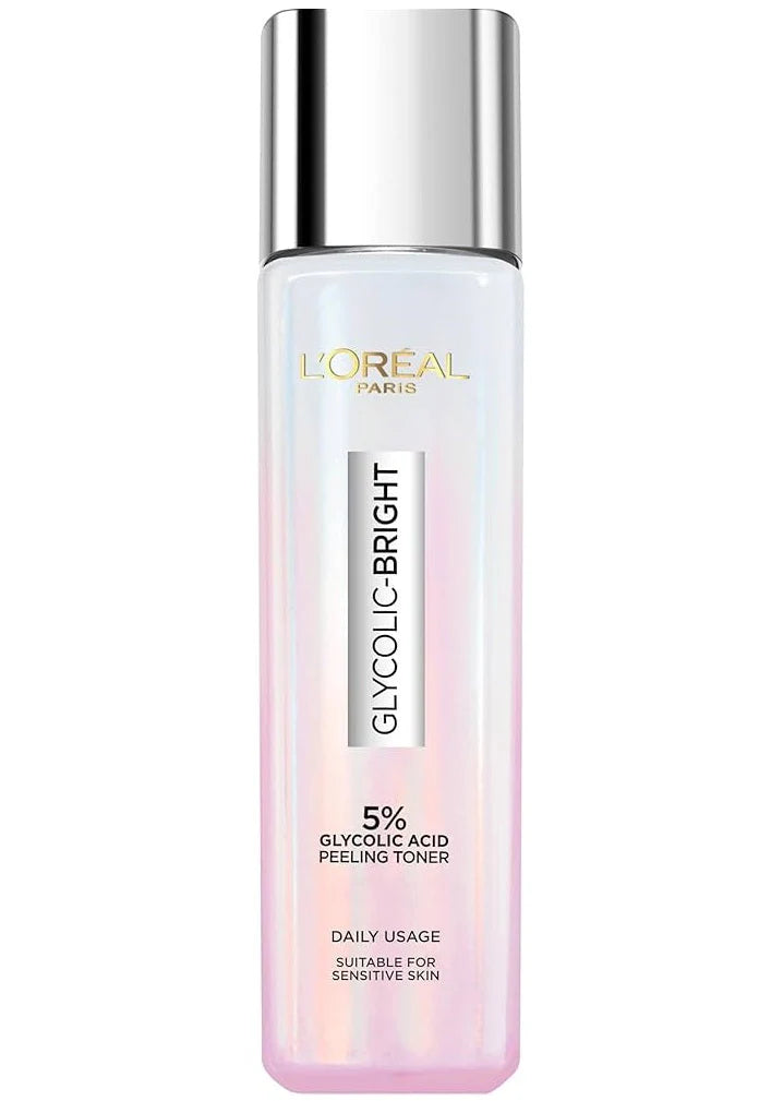 L’Oréal Skincare Laboratories developed Glycolic-Bright Glowing Peeling Toner formulated with 5% Glycolic Acid, the dermatologist's gold standard for professional peels, formulated for optimal efficiency and safety every day.