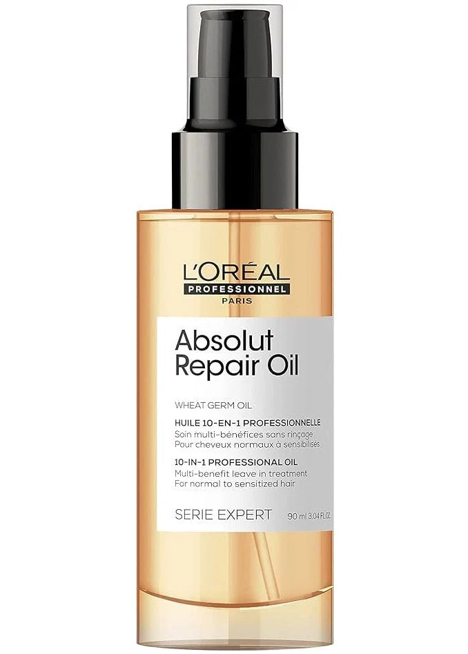 L'Oréal Professionnel Série Expert Absolut Repair 10-in-1 Oil is a multipurpose hair oil that offers the hair 10 benefits as soon as applied. This powerful leave-in is the perfect addition to the hair routine of those with damaged hair, regardless of the hair type. It will work on three fronts: as a treatment, protectant, and manageability. First, as a treatment, it will not only nourish and soften the hair but also resurface the hair and reduce split ends. As a result, the hair will have a lightweight touch and feel. On the other hand, the manageability of the hair will be improved. Therefore, the hair will be easier to detangle and blow-dry. Furthermore, this oil helps to control frizz for a polished look all day long. Lastly, this leave-in will provide both anti-pollution and heat protection to up to 230C/450F. Moreover, the application in oil form allows for easy distribution to ensure all hair strands will be perfectly coated in this powerful formula. All while providing a luxurious feeling