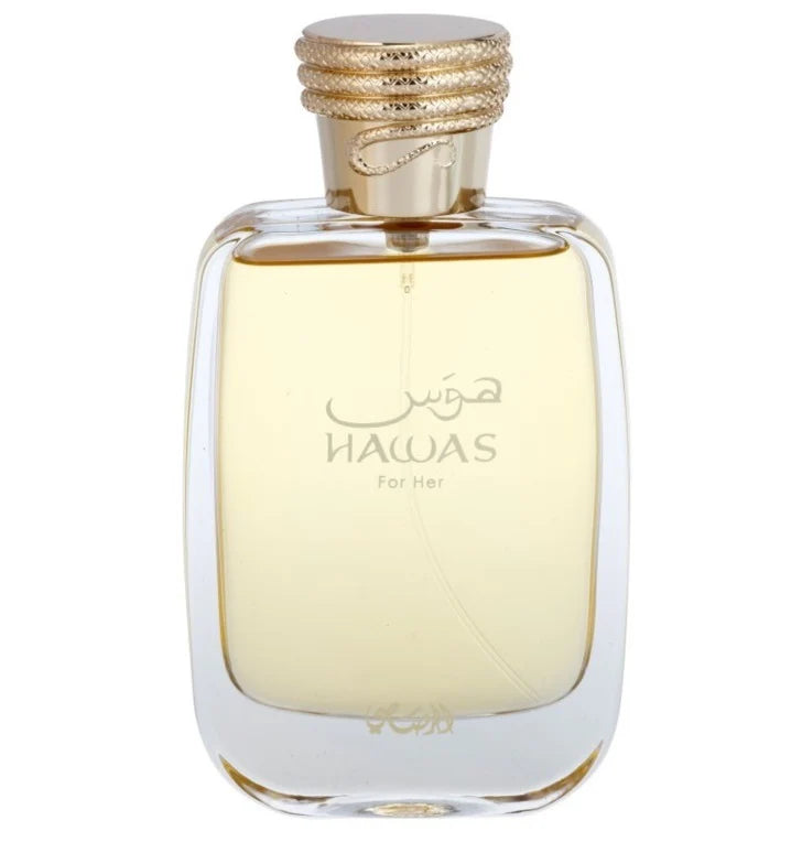 Hawas for Her incorporates pomegranate, jasmine sambac and vetiver for an haute couture perfume aimed at women who are seeking an edgy, yet chic fashion statement. The sensational floral woody fragrance is infused with the exotic gourmand scents.